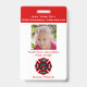 Professional looking pretend firefighter badge for kids. Perfect for role play and Halloween costume. Add child's photo and personalize information.