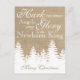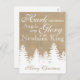 Cette carte de Noël de chrétien partage la signification vraie de la saison des vacances avec une citation d'une hymne préférée de Noël "prêtent l'oreille le héraut que les anges chantent la gloire au roi nouveau-né". Comporte un arrière - plan rustique de regard de toile de jute et une silhouette blanche simple et intemporelle des arbres à feuillage persistant. Customisez le dos de la carte postale avec un message spécial.
