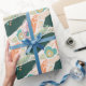 Pretty Abstract Floral Pattern Aqua Green Orange Wrapping Paper