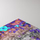 A cute array of aqua flowers is scattered against an ombre purple, grey, and rust background, embellished with dark grunge detail and faint tribal-pattern watermarks to create a truly unique and lovely eye-catching design.