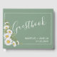 Pretty Basil Green & White Daisies Wedding Guest Book