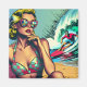 Pretty Blonde Retro Woman and Surfer Guy Magnet