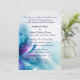 Pretty abstract blue and purple floral illustration. The typography/typeface is highlighted by an open end frame. Card reverses to a coordinated floral pattern. Your own personal wedding/event information can be easily inserted by following the template labelling instructions.