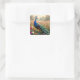 A beautiful illustration of a blue, turquoise and gold peacock in a field of meadow of flowers.