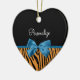 Pretty Blue Bow Stylish Tiger Stripes and Name Ceramic Ornament