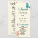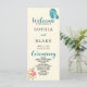 On the front of the program, you will find the couples' names, date, location, and ceremony events. The back of the program lists the bridal party in a simple black font that is easy to read. The words Welcome, Ceremony, Bridal Party, and the word "and" between the couples' names are in a decorative blue script font, which perfectly complements the colouring of the butterfly.