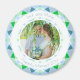 Pretty Blue and Green Wedding Keepsake Photo Gift Magnets. In spring and summer colors of green and blue. A springtime and summertime modern geometric pattern round border surrounds the picture in the middle. Replace the photo on this budget friendly fridge magnet with a picture of your own wedding celebration. The default text at the top says “Jack and Marie” in muted dark teal. At the bottom are the words “Happily Married 20xx”, in muted dark teal. Personalize this by changing the names at the top and the text and year at the bottom; and the photo. Give as a magnetic present for a new mother in law or mother of the bride or groom on your wedding day, or as a thank you gift for family, for coming to the service and reception. Newly weds, mother, the maid of honor or your bridesmaids will love putting this magnetic gift on their kitchen fridge or home office notice board to celebrate the marriage of their child, or of their family and friends. In lovely, bright and light summer colors for dopamine decor. A pretty create your own custom gift for newly weds or on your fourth anniversary.