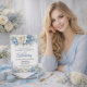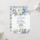 Ideal for women who love refined, botanical-inspired details, this invitation sets the tone for a beautiful gathering, whether you are planning an intimate dinner, formal party, or stylish birthday soirée. The soft blue and cream color palette offers a fresh, modern feel while maintaining a timeless aesthetic that guests will adore.