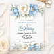 Pretty Blue Magnolia and Peony 80th Birthday Invitation