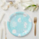 These pretty blue and teal beach themed paper plates have a design of seahorses, sand dollars, seashells and coral on them. Perfect for a beach themed wedding or baby shower.