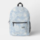 Pretty Blue & White Leaf Pattern Monogram Initials Printed Backpack