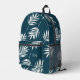 Pretty Blue White Leave Pattern Monogram Initials Printed Backpack