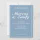 Pretty, modern, minimalist and trendy casual wedding invites design features 2022 colour palette of glacier lake blue background with white customizable text blocks in modern fonts