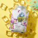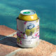 Can cooler with an amazing photograph of the cutest little bird perched on a branch covered in pink blossoms and green leaves. The bird has a blue head and yellow body with a very sweet face. Adorable.