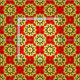 Seamless decorative geometric pattern featuring geometric shapes in red, yellow and black.