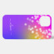Colourful gradient blend in dark blue, pretty pink, mauve and yellow, with falling bokeh sparkles in white. Personalize with your name or initials in white sans font lettering.
