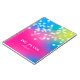 Colourful gradient blend pretty bright fuchsia pink, blue with a hint of yellow-green, with falling bokeh sparkles in white. Personalize with your name or initials in white font lettering.