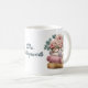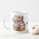 Lovely teacher's gift mug, with artwork of colourful pastel stacked books, with pink roses and a pair of glasses, on top. Personalize the blue text field, on the front, for a great gift idea for your favourite teacher.