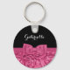 A pretty pink and black rose pattern keychain with a cute pink ribbon tied into a girly bow. Personalized this feminine pink floral design by adding the name of any girly girl.