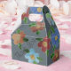 Favour box blooming with colourful floral art pattern. The grey background can be changed to any colour to match your special celebration event or wedding colours. The thank-you text can be personalized or the text is removable.