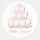 Pretty bridal shower envelope seal, with a fun white with pink polka dot background and graphics of a pink wedding cake. Text reads Bridal Shower and is customizable to read anything you want. Great accent and finishing touch to the matching bridal shower invitations, see links below for matching products.
