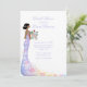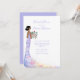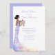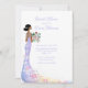 Elegant pastel coloured bridal shower invitation done in white with graphics of a pretty bride in a floral dress. Personalize all the text to suit your wedding event needs.