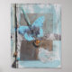 Butterfly dreams mixed media art on poster. Soft blues and creams with a butterfly metal cutout and dream stamped heart. Jenn's Emporium.
