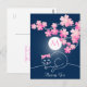 Pretty Cat Cherry Blossoms Moon Pink Sakura Blue Postcard