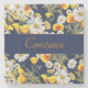 Pretty chamomile and poppies floral pattern on navy blue background with text band. Customize with name or other special message.