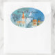 A Pretty Christmas Village scene on a handy oval sticker, and custom typography for easy personalisation of the greeting and your name.