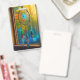 Pretty blue and red dreamcatcher hanging in a window. Serene art blank card.
