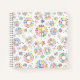 Pretty Colourful Flowers Circles Pattern on White Notebook