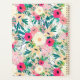 This design is a modern and trendy watercolor painting of colourful flowers including elegant hot pink poppies, cute light coral flowers, white daisies, girly yellow flowers, mint green foliage paint, eucalyptus foliage, teal, and green leaves on a white background. The vibrant hand-painted floral design is an original and fashionable piece of botanic art and a stylish summer illustration.