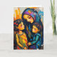 Beautiful illustration of a mom with two kids in a colourful abstract ai art. Happy Mother's Day card with a personalized message on the inside. Colours used are blue, purple, yellow and orange.