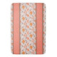 Pretty and modern bath mat design features orange and coral coloured flower panel with bands of coral and gold polka dots
