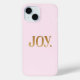 Learn to appreciate the small joys in life and you will find happiness. Snag this adorable light pink iPhone 15 Barely There case with "JOY" in faux gold glitter to add a little sparkle to your phone.