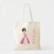 Cute girl's reusable Halloween candy Treat Bag, with graphics of a dark haired princess dressed in pink with a golden crown. Pink text reads Princess and can be personalize to read what you want. The perfect Halloween trick or treat bag for your little princess.