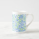 Pretty Ditsy Blue Green White Periwinkle Flowers Bone China Mug
