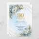Pretty Dusty Blue Gold Border 90th Birthday Invite