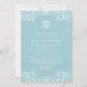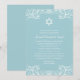 This formal, elegant Bat Mitzvah invitation features a white Star of David and a decorative white design along the top and bottom of the invite, all set against a pretty blue background.