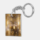 A pretty anime elven fairy holding her cute green and gold baby dragon fairy tale themed personalized key chain.