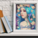 Personalized poster with fairy tale art. Pretty fairy girl with blue hair and flowers in her hair and blue eyes. Fantasy art ai art. generativecontent