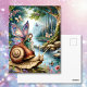 Beautiful fairy on a snail in a magical forest with frogs, butterflies and other fairytale things.