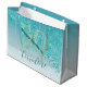 Pretty Falling Teal Blue Glitter 50th Birthday Large Gift Bag