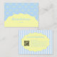 Pastel trendy blue yellow bow stripe pattern business card designed for pretty, girly, feminine brands. Perfect for handmade baby clothing boutiques, makeup artists, and small business owners. Features stylish QR code integration with a soft vintage-inspired aesthetic for modern, eye-catching branding.