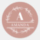 Pretty Feminine Pink Wreath Custom Monogram Classic Round Sticker