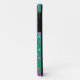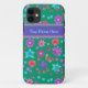 A pretty, customizable floral Case-Mate case to protect your iPhone 5, with a pattern of bright flowers in purple, turquoise, pink and orange on a sea green background from a hand-painted paper collage by Judy Adamson. You can easily customize the background colour if you wish.