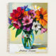 A pretty personalized floral planner with an illustration of a colorful vibrant glass vase of flowers done in an ai impasto style oil painting. Keep track of appointments and birthdays in this gorgeous floral planner.