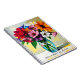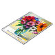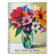 A pretty personalized floral notebook with an illustration of a colourful vibrant glass vase of flowers done in an ai impasto style oil painting.