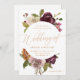 Elegant gold colour calligraphy with beautiful dark raspberry pink watercolor floral blooms and a solid white back wedding invitation.